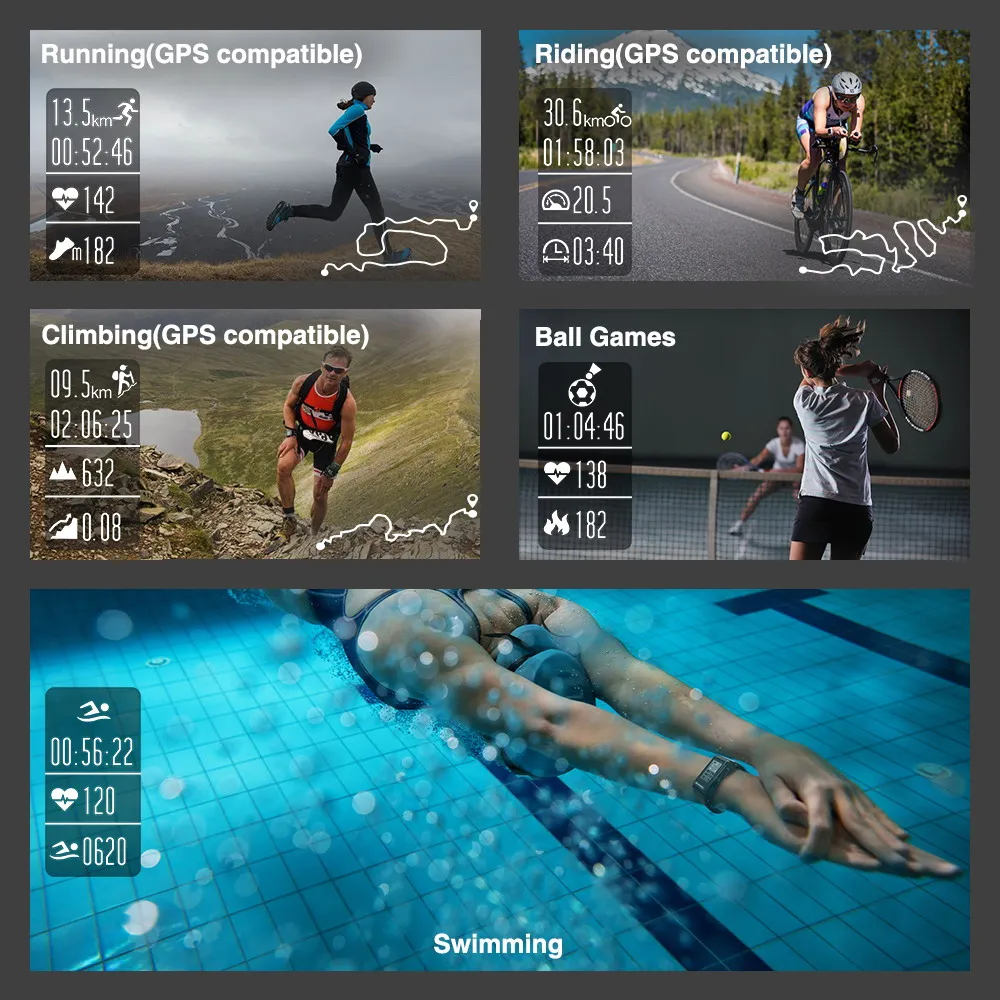 Multi-sport modes:Swimming, Running, Climbing, Cycling, Walking, Ball games