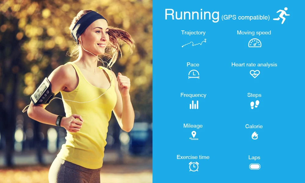 GPS tracking:Speed, pace, trace, mileage, Calories burned, steps, sports time