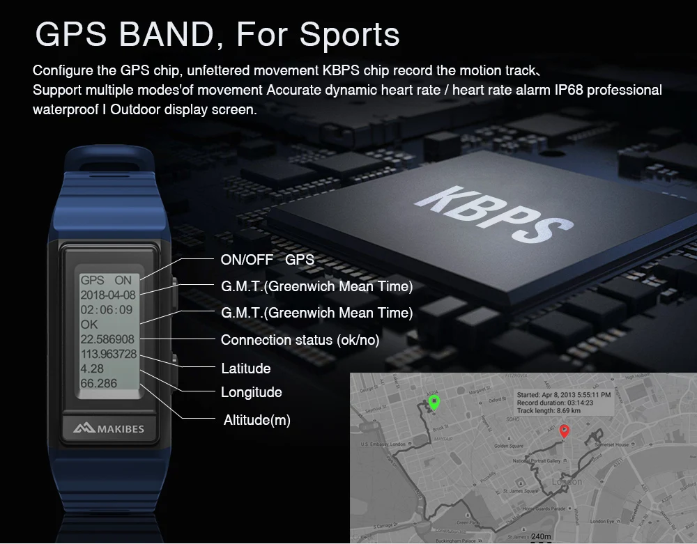 Model:Makibes G03S GPS Multisport Wristband
