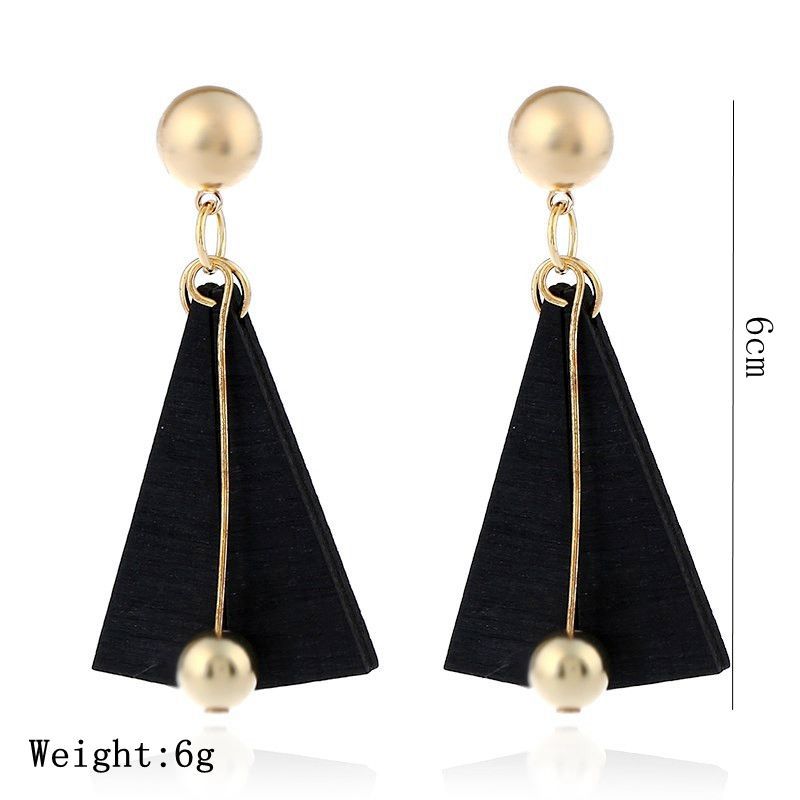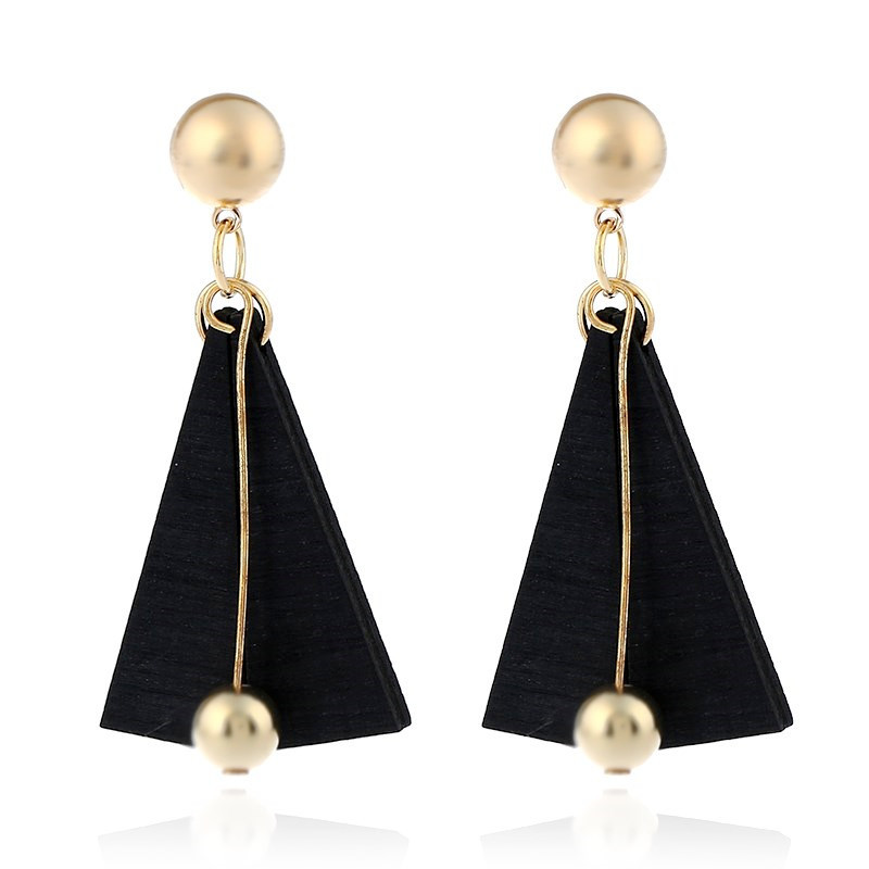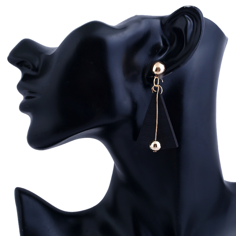 产品名称:2017新款金属球流苏耳环 欧美时尚简约几何三角木头长款耳环