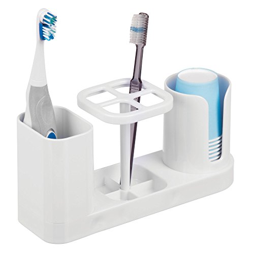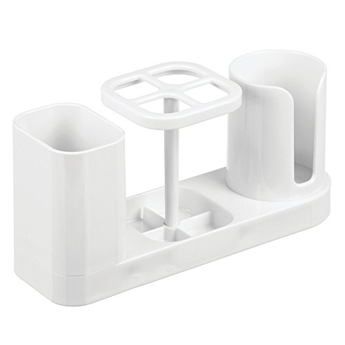 mDesign Bathroom Dental Organization Center for Toothbrush, Toothpaste, Rinse Cups - White