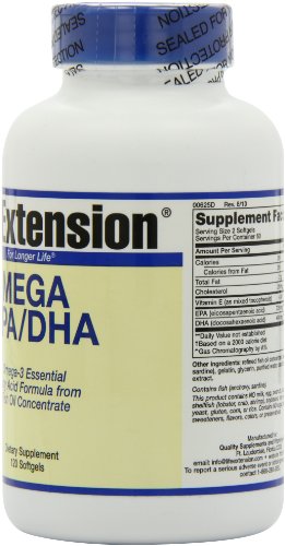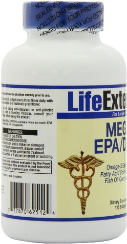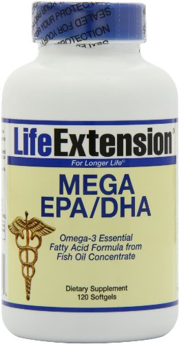 -. Binding : Health and Beauty -. Brand : Life Extension -. EAN : 0593159125750 -. Feature : The body needs fatty acids to survive and is able to make all but two of them / High In Fatty Acids / Omega-3 oils contain the essential fatty acids eicosapentaenoic acid (EPA) and docosahexaenoic acid (DHA) -. IsAdultProduct : 0 -. Label : Life Extension -. LegalDisclaimer : These statements have not been evaluated by the FDA. These products are not intended to diagnose, treat, cure, or prevent any disease. -. Manufacturer : Life Extension -. MPN : 00625 -. NumberOfItems : 1 -. PackageQuantity : 1 -. PartNumber : 00625 -. ProductGroup : Health and Beauty -. ProductTypeName : HEALTH_PERSONAL_CARE -. PublicationDate : 2011-01-12 -. Publisher : Life Extension -. Size : 120 softgels -. Studio : Life Extension -. Title : Life Extension Mega EPA/DHA 120 softgels -. UPC : 737870625124