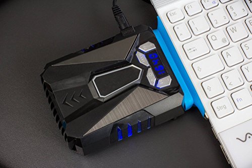 -. Feature : RAPID COOLING:Compared with traditional cooling pads, this laptop cooling pad cools down faster more than you can image. Rapidly cooling both surface and internal temperature in minutes, maximises the laptop's lifespan. / COMPATIBILITY: High performance laptop cooler to be placed against the air outlet (on the side or behind the laptop). Adjustable silicon sleeves to fit all sizes of laptop (10" to 17"). / ULTRA-QUIET FANS:The laptop cooling fan is built with turbo fan for strong wind and low noise.The Cooler is equipped with an anti-noise foam, making the fan rather silent. The max noise is less than 60dbm even at the maximum speed, creating a noise-free environment for you when you are working or playing games. / CLEAR LED SCREEN:The LED screen dynamically displays the air temperature and wind speed. / AUTOMATIC and MANUAL:the Cool is the first smart vacuum fan. It measures the laptop's temperature and automatically adjusts the fan's power to cool the laptop,which are both manually adjustable.