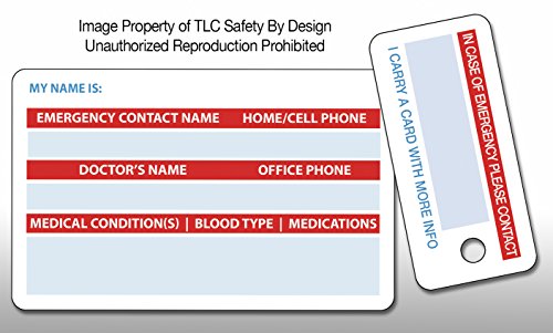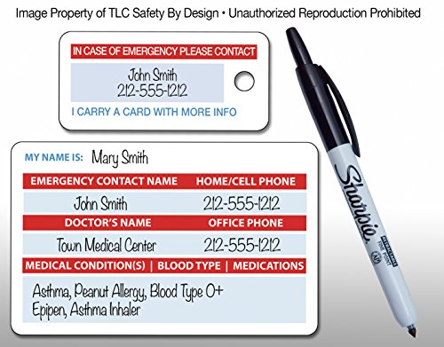 - DOUBLE DUTY AS YOUR OWN PERSONAL IN CASE OF EMERGENCY (I.C.E.) CARD: Since the card and key tag have all of your information and list any medical condition(s) or allergies you may have, your contact will be alerted and will be able to notify any family members.