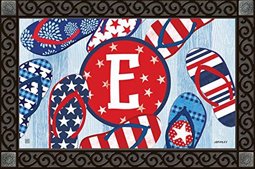 FREEDOM FLIP FLOPS MONOGRAM E DOORMAT INDOOR/OUTDOOR PATRIOTIC LETTER E MATMATES
