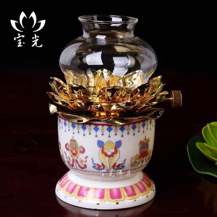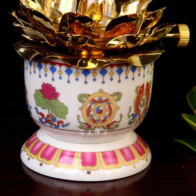 宝光佛具供佛油灯陶瓷八吉祥调光酥油灯佛前供灯座长明灯佛教用品