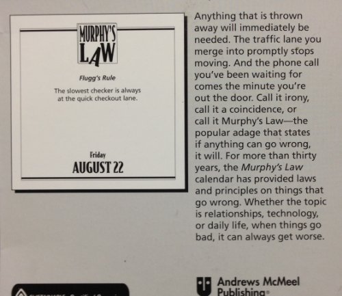 -. Feature : 2014 Murphy's LAW Daily Page-A-day Box / Desk Calendar When all else fails, blame Murphy's Law! / 5.5" x 5.5" Desk/Boxed, Daily Page-A-Day / nything that is thrown away will immediately be needed. The traffic lane you merge into promptly stops moving. And the phone call you've been waiting for comes the minute you're out the door. When all else fails, blame Murphy's Law, the popular adage that states if anything can go wrong, it will. The Murphy's Law 2014 Day-to-Day Calendar provides laws and P.R.Inciples on things that go wrong. Whether the topic is technology, politics, relationships, or just everyday life, when things go bad, it can always get worse.