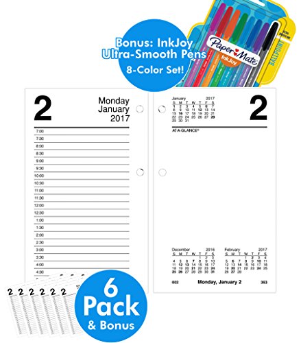-. Feature : Bonus bundle includes: Pack of 6 calendars + 8-color set of Paper Mate InkJoy ultra-smooth pens! / Daily refill will help you stay up-to-date and organized. Covers 12 months from January-December keeping you up-to-date for a full year. Julian dates. / Features two pages per weekday with half hourly appointments 7:00 a.m. - 5:00 p.m. for detailed scheduling; 3.5 in. x 6 in. page size. 3.5 in. x 6 in. x 1 in. overall size. / Past, current and future months reference for additional planning perspective. / Fits standard 17 Style bases (sold separately) with 2 rings.