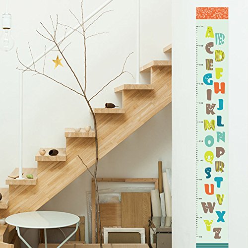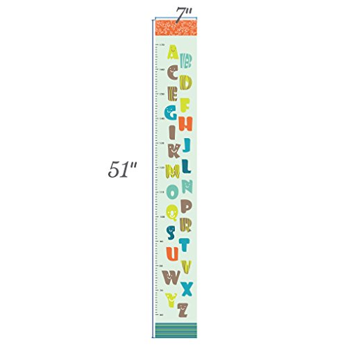 Woodland Arts 7" x 51" A to Z 26 Alphabets Letters Measurement Growth Chart Removable Vinyl Wall Decals Stickers for Children Room Nursery