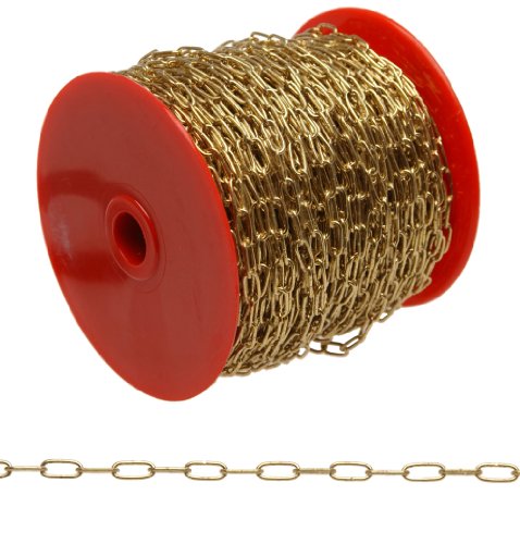 Campbell 0710517 Hobby/Craft Clock Chain on Mini Reel, Brass Plated, #5 Trade, 0.051" Diameter, 82' Length, 10 lbs Load Capacity