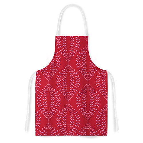 KESS InHouse Anneline Sophia "Laurel Leaf Red" Maroon Floral Artistic Apron, 31 by 35.75", Multicolor
