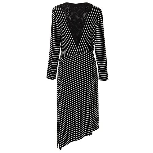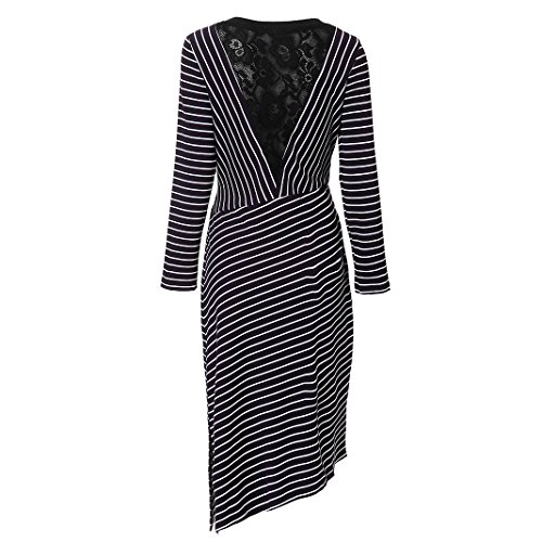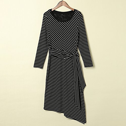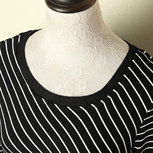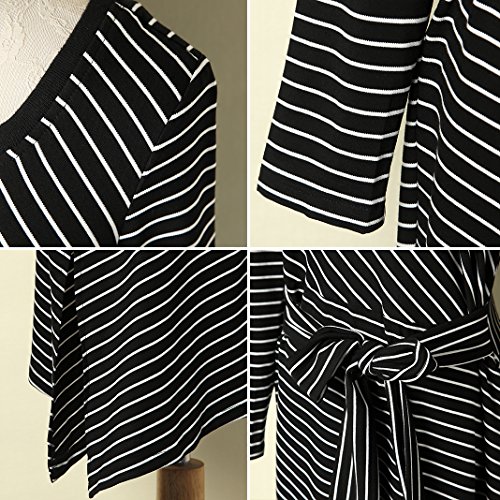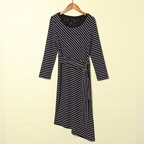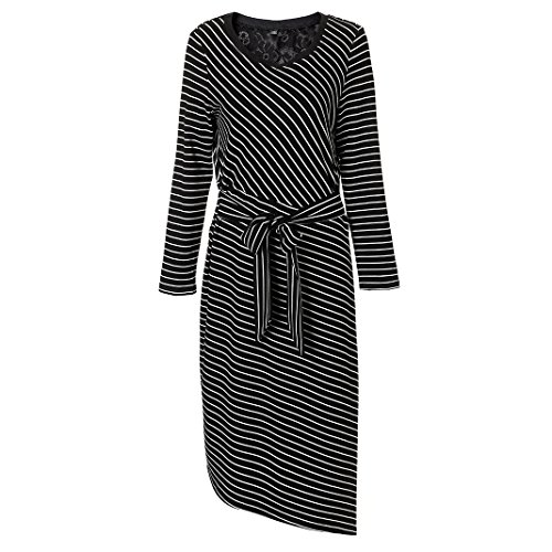 MINICAT Women Striped Long Sleeve Casual Bodycon Dress With Round Neck