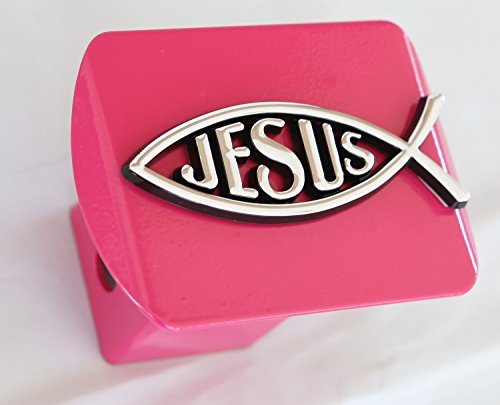 Metal Trailer Hitch Cover Fits 2" Receivers (Jesus Fish Spiritual Love on Hot Pink)