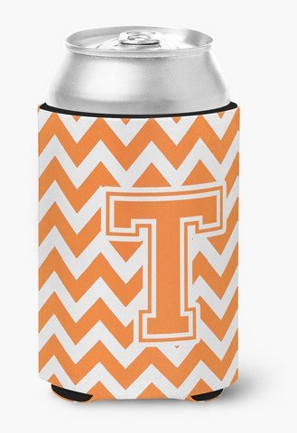 Caroline's Treasures CJ1046-TCC Letter T Chevron Orange and White Can or Bottle Hugger, Multicolor
