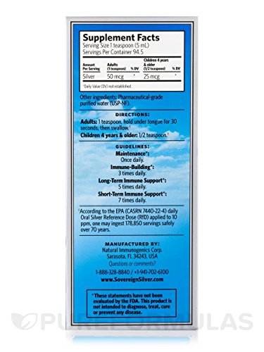 Studio : Sovereign Silver Publisher : Sovereign Silver Binding : Health and Beauty Product Description Immune Support!"Colloidal Silver" has been used since the late 1800's in countless applications? and encompasses a wide variety of silver products. Many contain (claimed or unclaimed) salts? proteins? compounds or stabilizers - all of which affect the safety and efficacy of silver.Bio-Active Silver Hydrosol represents the ultimate refinement of the colloidal silver category. It contains 98% positively charged silver? in pharmaceutical-grade purified water. This unique silver species? with a verified and unmatched particle size? remains in its most active state for use within the body.These statements have not been evaluated by the Food and Drug Administration (FDA). These products are not meant to diagnose? treat or cure any disease or medical condition. Please consult your doctor before starting any exercise or nutritional supplement program or before using these or any product during pregnancy or if you have a serious medical condition. 0