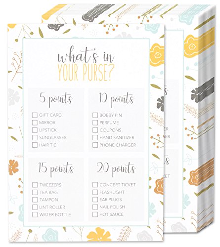 50 Baby Shower Game Sheets "What's in Your Purse?" Party Games - for Boy or Girl Unisex Gender Neutral - for 50 Guest Activities Supplies - 5 x 7 Inches
