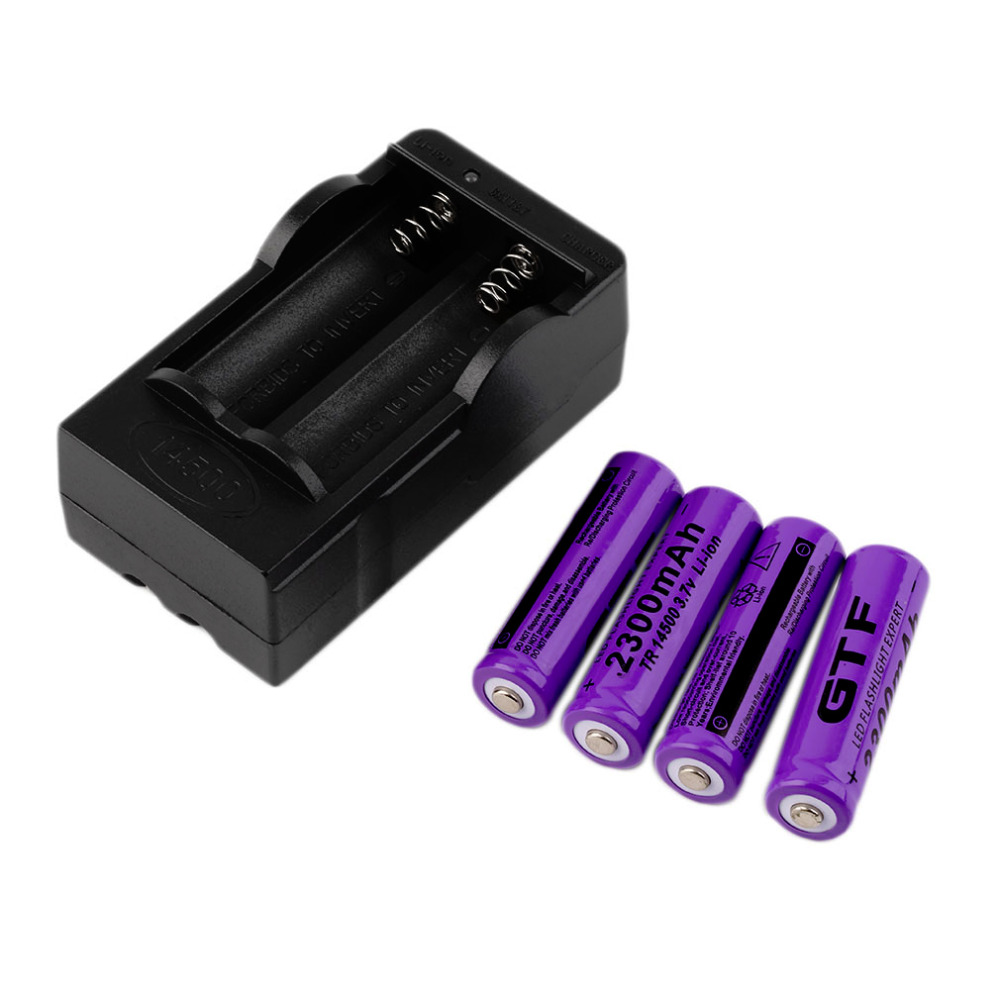 | Features: 100% Brand new and high quality! Discharge rate no''memory effect'' Low reoccurring operation cist Short -circuit and over-current protection Safe and environmental friendly Keep in a dry and cool place. Specifications: Battery Model: 14500 Battery Type: Li-ion Voltage: 3.7V Capacity: 2300mAh Dimension: Diameter: 12mm; Height: 49mm Color: Purple Charger: Plug Type: US Input Voltage: AC 100-240V 50/60Hz Output: DC 4.2V/800mA Dimension: 85mm x 45mm x 36mm Color: Black Package includes: 4 x Batteries 1 x Battery Charger |