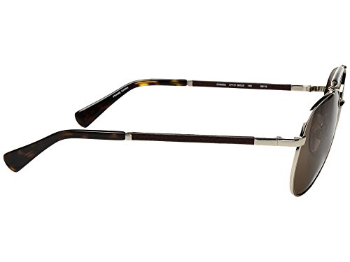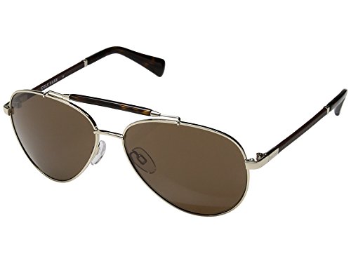 A classic aviator in stainless steel with tortoise top brown and gunuine leather-wrapped temples, metal endcaps and laser-etched Cole Haan logo.
