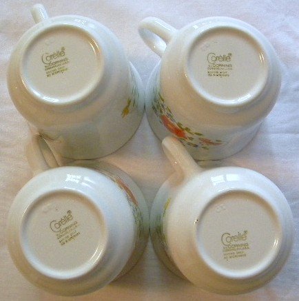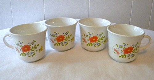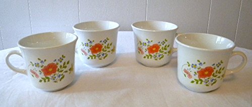 -. Feature : Vintage Wildflower Pattern By Corelle Corning Ware / This Is A Pristine Four Cup Set, An Amazing Find / This Pattern Was Made in 1977 And Is Now Discontinued / You Will Not Find A Nicer Wildflower by Corelle Cup Set Anywhere / New Set Of Four Cups From Smoke Free Storage