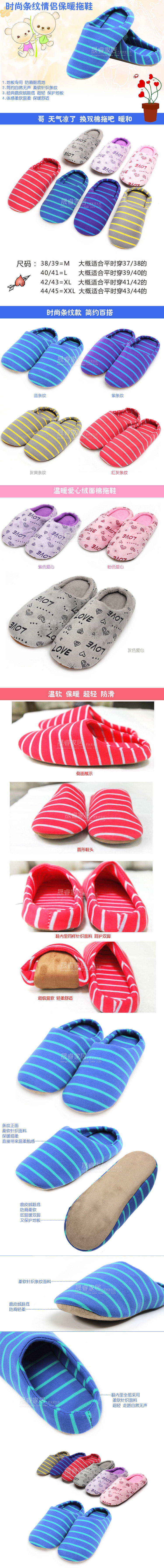 Striped models using cotton fabric? with a breathable soft features? slippers bag with considerate to your feet like care? the color looks very warm and comfortable? in this winter season? giving you the most comfortable and warm care. love models with plush uppers? plush shoes make your feet feel more comfortable. This work tired day wear slippers for your tired eased. Home essential. Men and women? couples? families rare combination of a perfect match home cotton slippers.