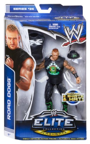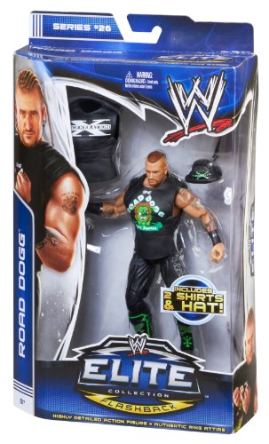 -. Binding : Toy -. Brand : Mattel -. EAN : 0746775340803 -. Feature : Bring home the officially licensed WWE action / Elite Collection Series features authentically sculpted 6-inch figure / Kids can recreate their favorite WWE matches / Features deluxe articulation, amazing detail and authentic accessories / Perfect for WWE fans and collectors of all ages -. IsAdultProduct : 0 -. Label : Mattel -. LegalDisclaimer : In no event, regardless of cause, shall West Road Creative, LLC be liable for any indirect, special, incidental, punitive or consequential damages of any kind, whether arising under breach of contract, tort (including negligence), strict liability or otherwise, and whether based on this agreement or otherwise, even if advised of the possibility of such damages. -. Manufacturer : Mattel -. Model : BHJ89 -. MPN : BHJ89 -. PackageQuantity : 1 -. PartNumber : BHJ89 -. ProductGroup : Toy -. ProductTypeName : TOYS_AND_GAMES -. Publisher : Mattel -. Studio : Mattel -. Title : WWE Elite Collection Road Dogg Action Figure -. UPC : 746775340803 -. Warranty : No Warranty
