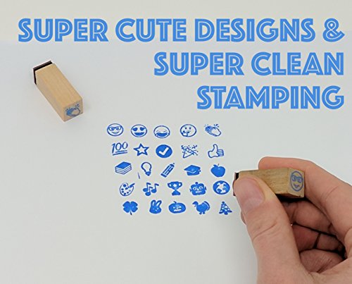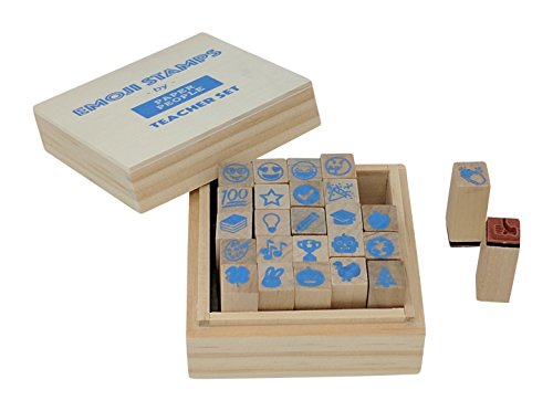 Emoji Teacher Stamps by Paper People - The Best Teacher Gift, Cute Teacher Appreciation Gifts - 25 Pc Wood/Rubber Stamper Set, Includes Apple, 100, Star, Math, Science, English & Christmas Stamps