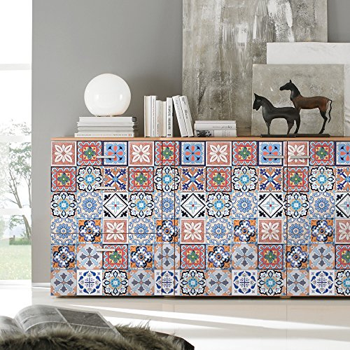 - H4S stylish wall flooring covering decorative tile stickers decals can be used for a kitchen backsplash, in a bathroom, on stair risers, wall tile, cabinet doors, wardrobe, shelves, appliances, table top or any other clean and sleek surface where you want to add a splash of color