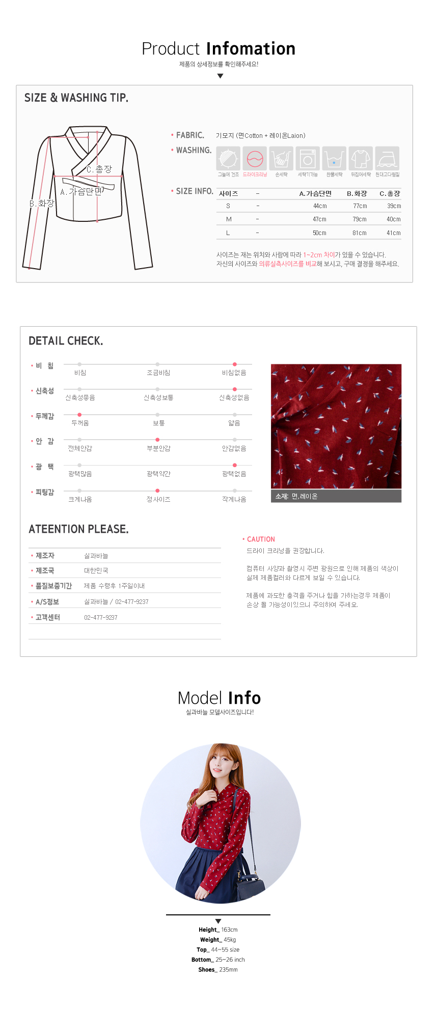 -버건디 기모에 아이보리,네이비의 낙엽패턴이 들어가 있어, 심플하면서도 손쉬운 코디연출이 가능합니다.