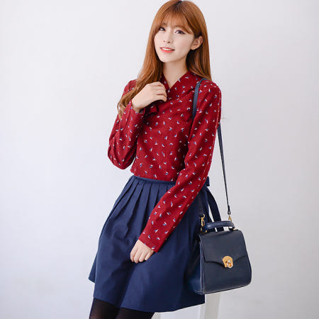 -모델은 미니 네이비허리치마와 코디했어요