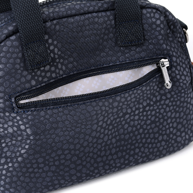 후면 지퍼 수납 공간에는 손수건, 교통 카드 등 수납이 가능합니다.