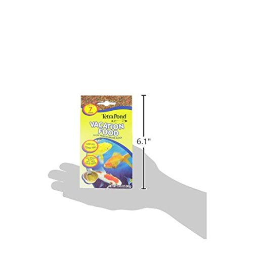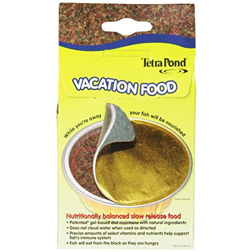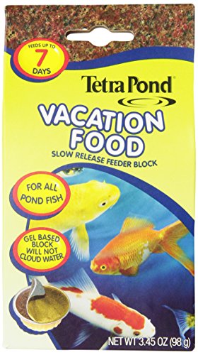-. Binding : Misc. -. Brand : Tetra Pond -. Feature : 1 Block / Keep peace of mind while travelling with Tetra Pond Vacation Food / Gel based block for feeding up to 7 days / Precise amount of vitamins and nutrients help support immune system / Will not cloud water -. Label : Tetra Pond -. Manufacturer : Tetra Pond -. Model : 16477 -. PackageQuantity : 1 -. ProductGroup : Pet Products -. ProductTypeName : PET_SUPPLIES -. Publisher : Tetra Pond -. Studio : Tetra Pond -. Title : TetraPond 16477 Vacation Food Slow Release Feeder Block, 3.45 Ounce