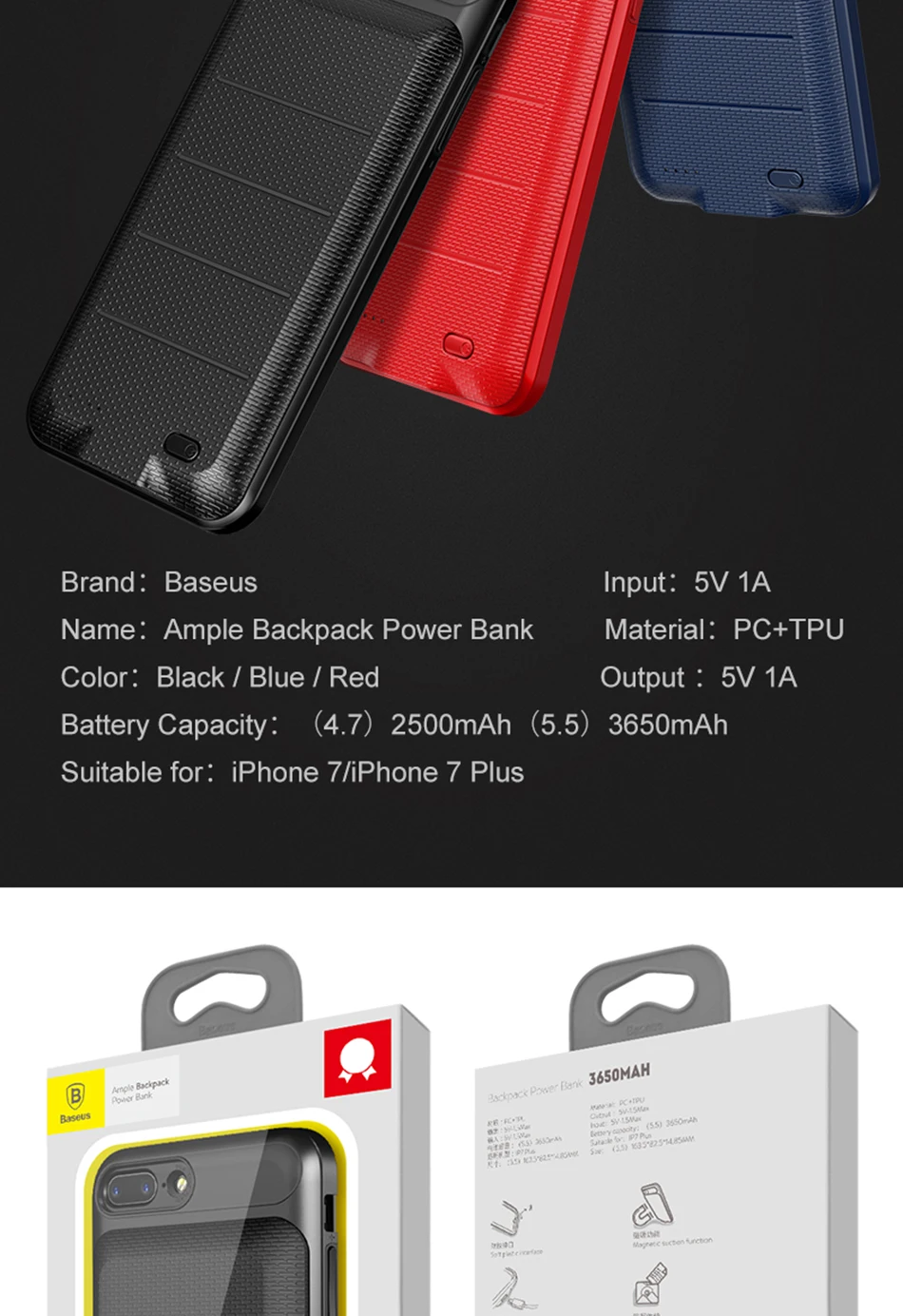 Baseus Charger Case For iPhone 7 7Plus Powerbank Battery Case For iPhone 7 Plus Charging Case Mobile Phone Power Bank Cover Case