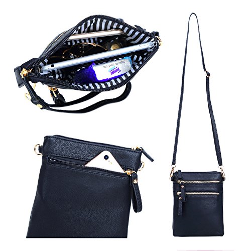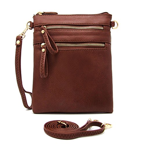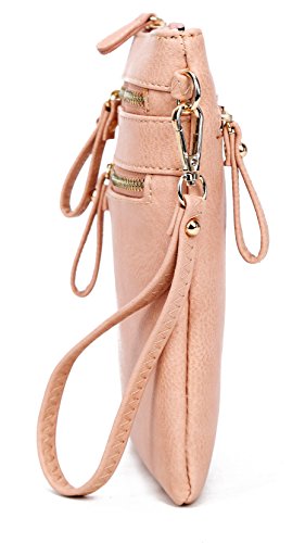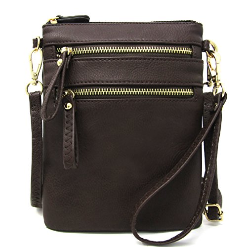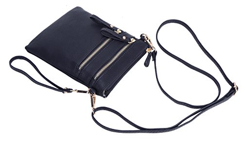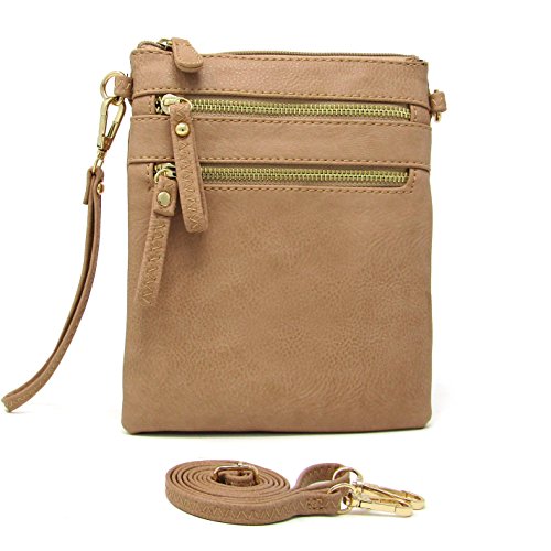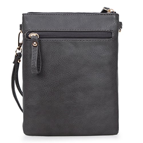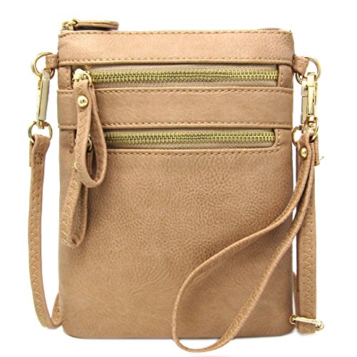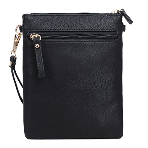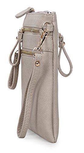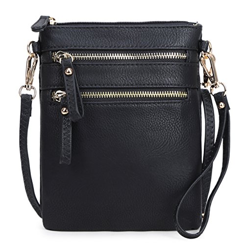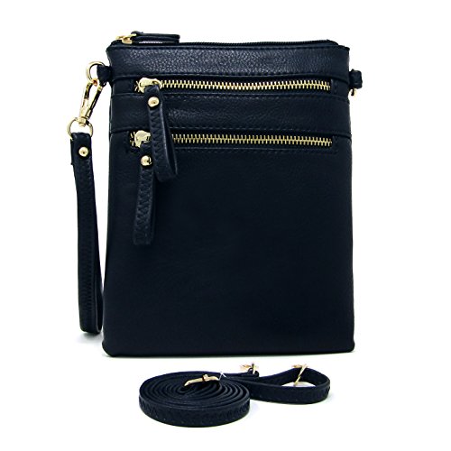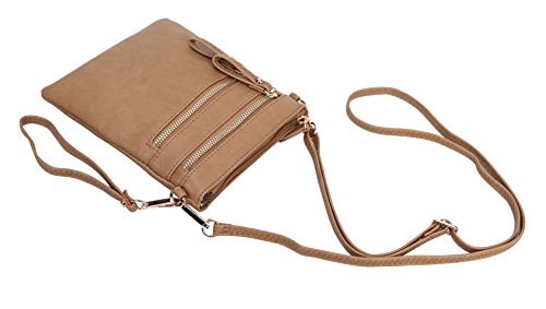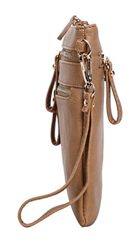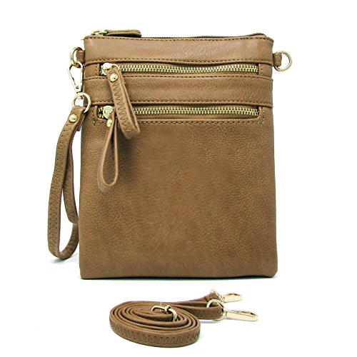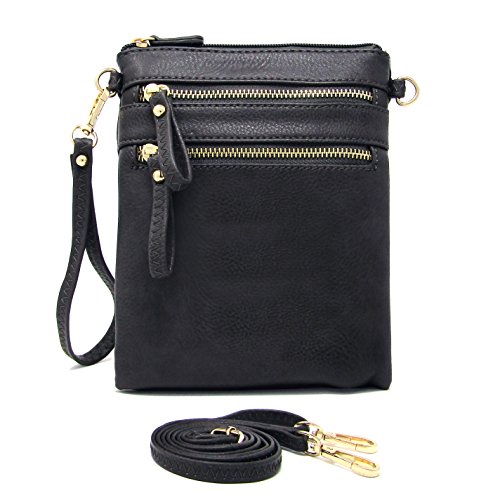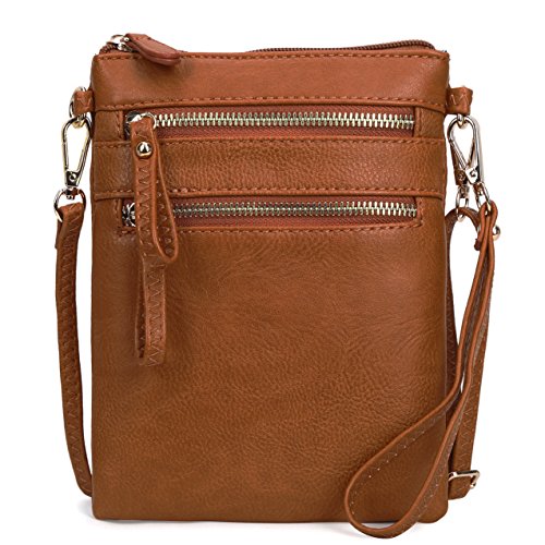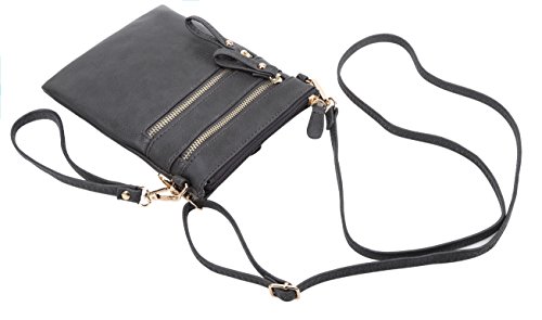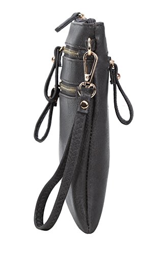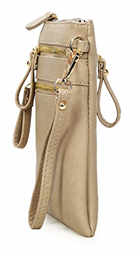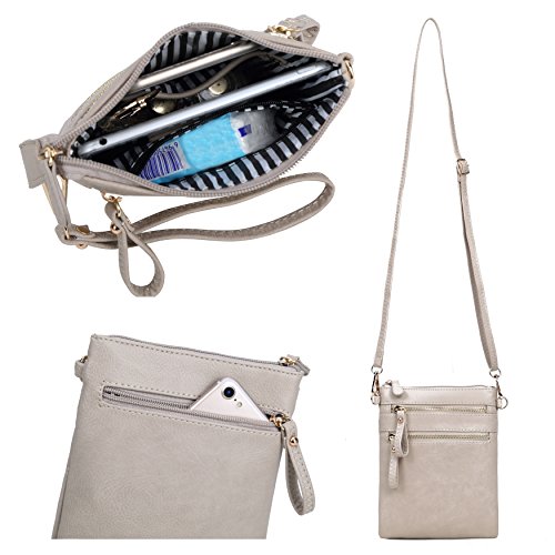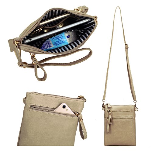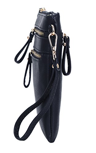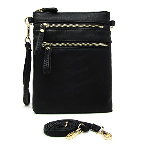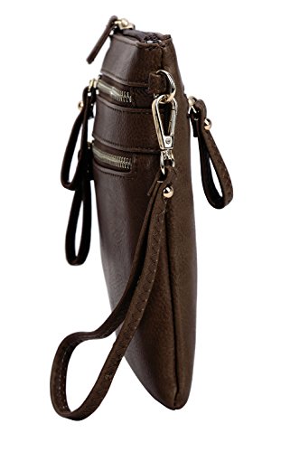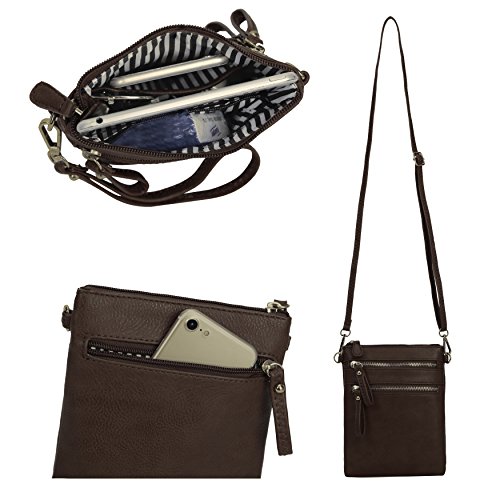 | Solene Women's Faux Leather Organizer Multi Zipper Adjustable Shoulder and Wristlet Crossbody Bag |