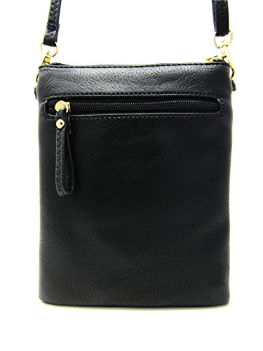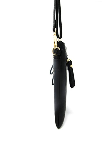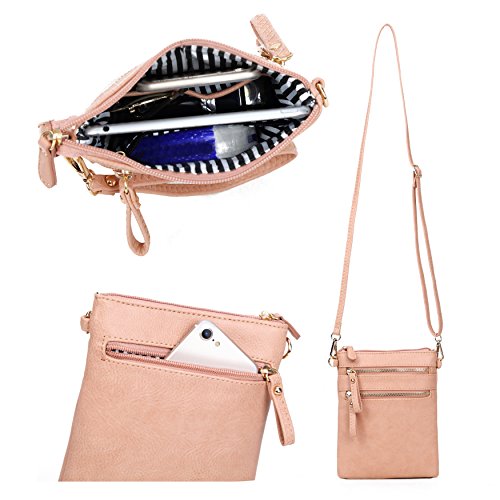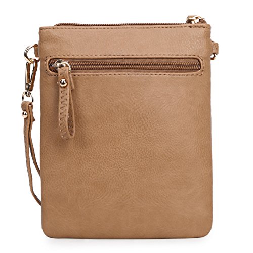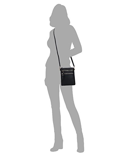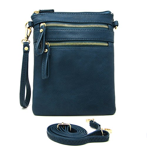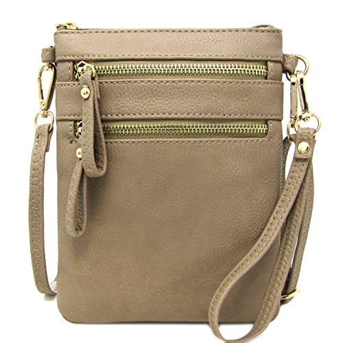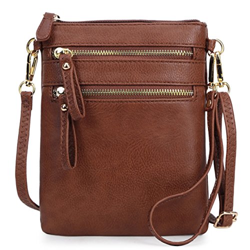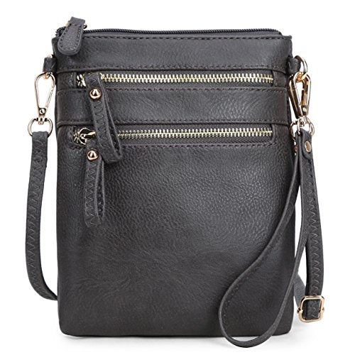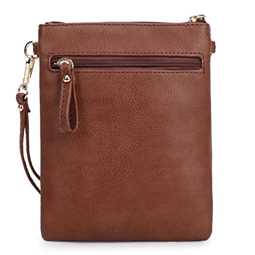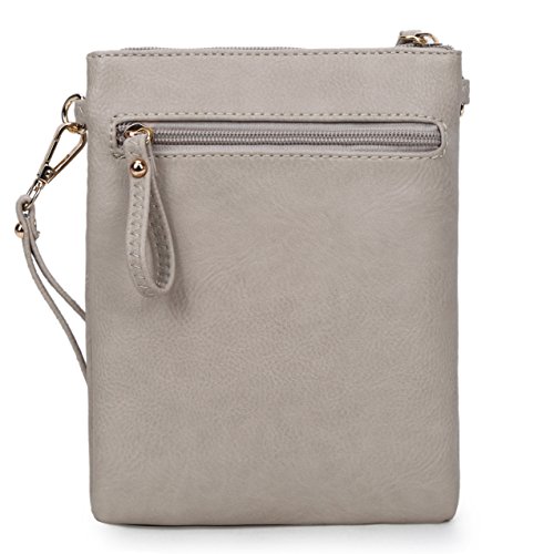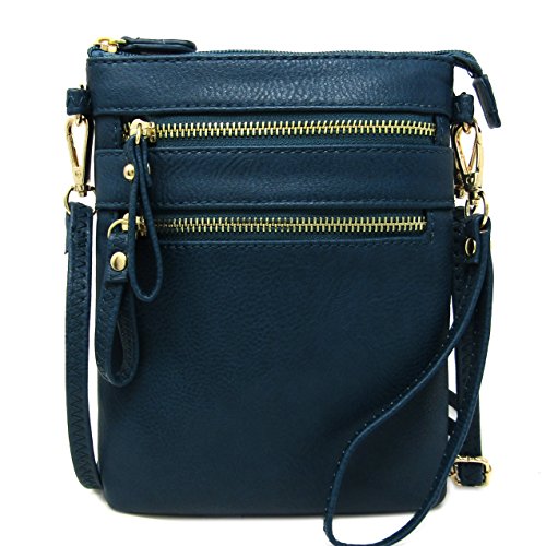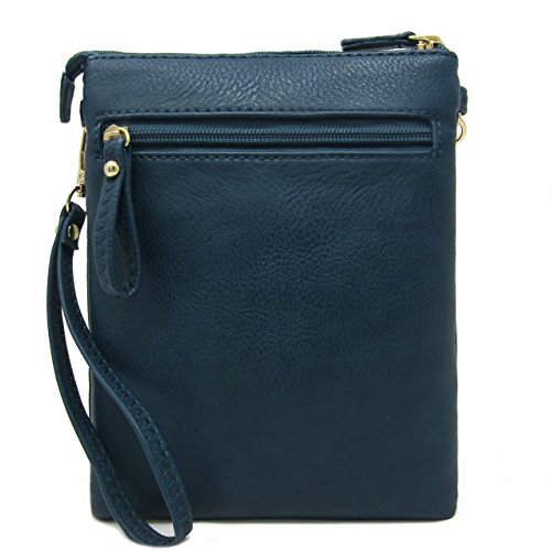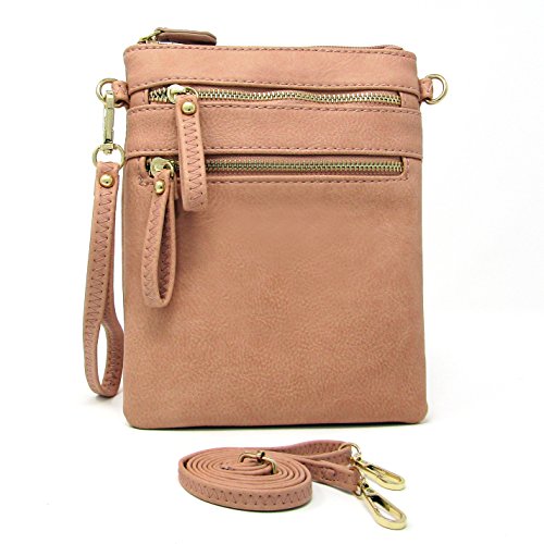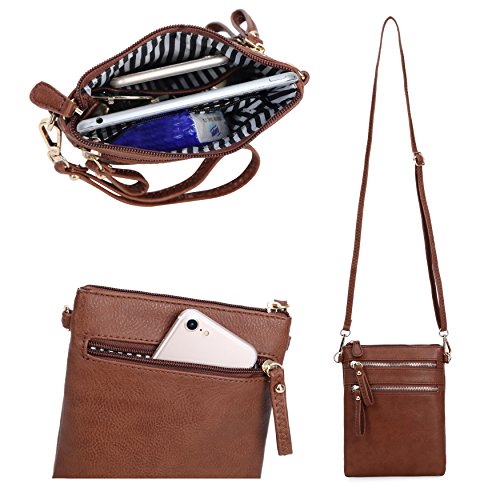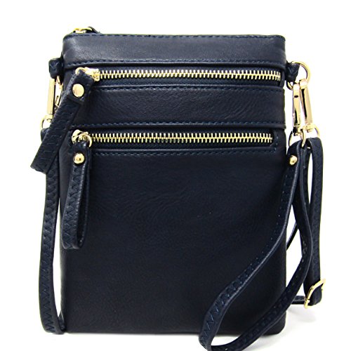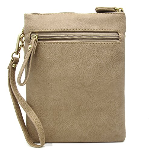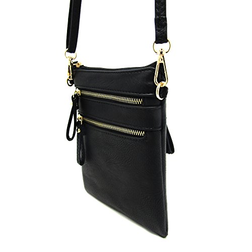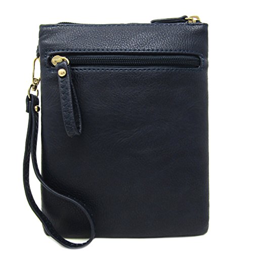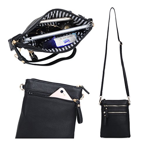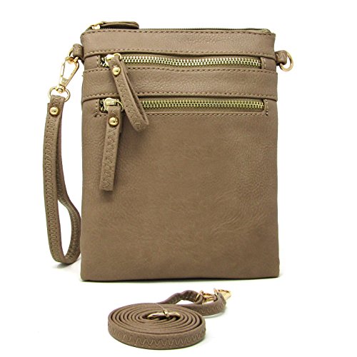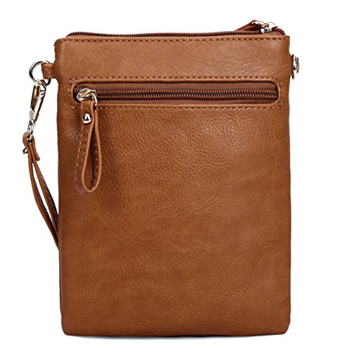 | Solene Women's Faux Leather Organizer Multi Zipper Adjustable Shoulder and Wristlet Crossbody Bag |