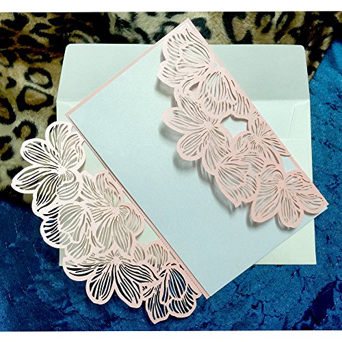 WOMHOPE® 50 Pcs - Flower Petals Hollow Laser Cut Lace Shimmer Wedding Invitation Party Invitations Cards Birthday Invitations Cards Wedding...