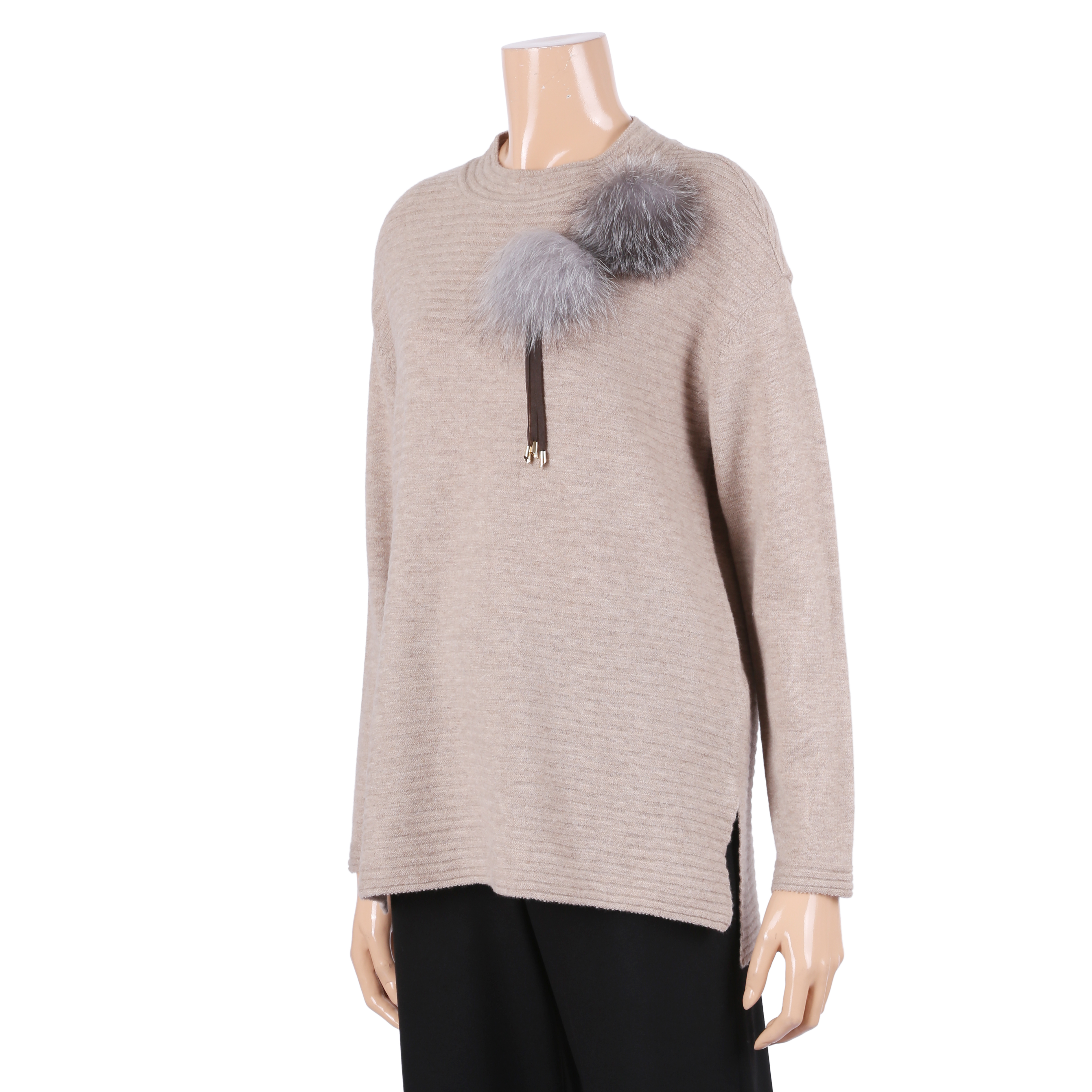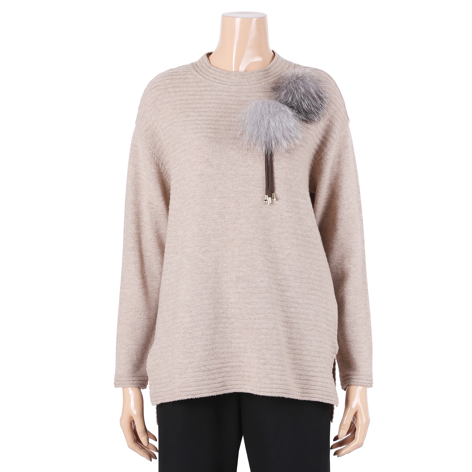 이 제품은 우바로쏘의 젊고 케쥬얼스러운 기본형의 라운드 폭스장식 니트 티셔츠입니다