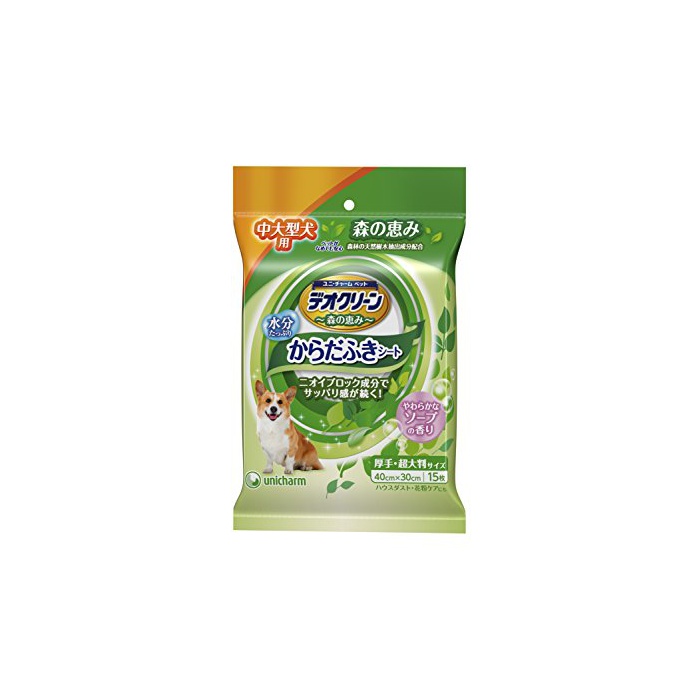 원본상품명:デオクリ?ン からだふきシ?ト 中大型犬用 香り付き 15枚×3個