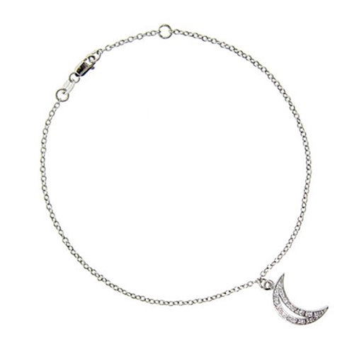 This anklet is made from Silver-Tone and features a dangling crescent moon charm. The charm is designed with white cubic zirconia's on the front.