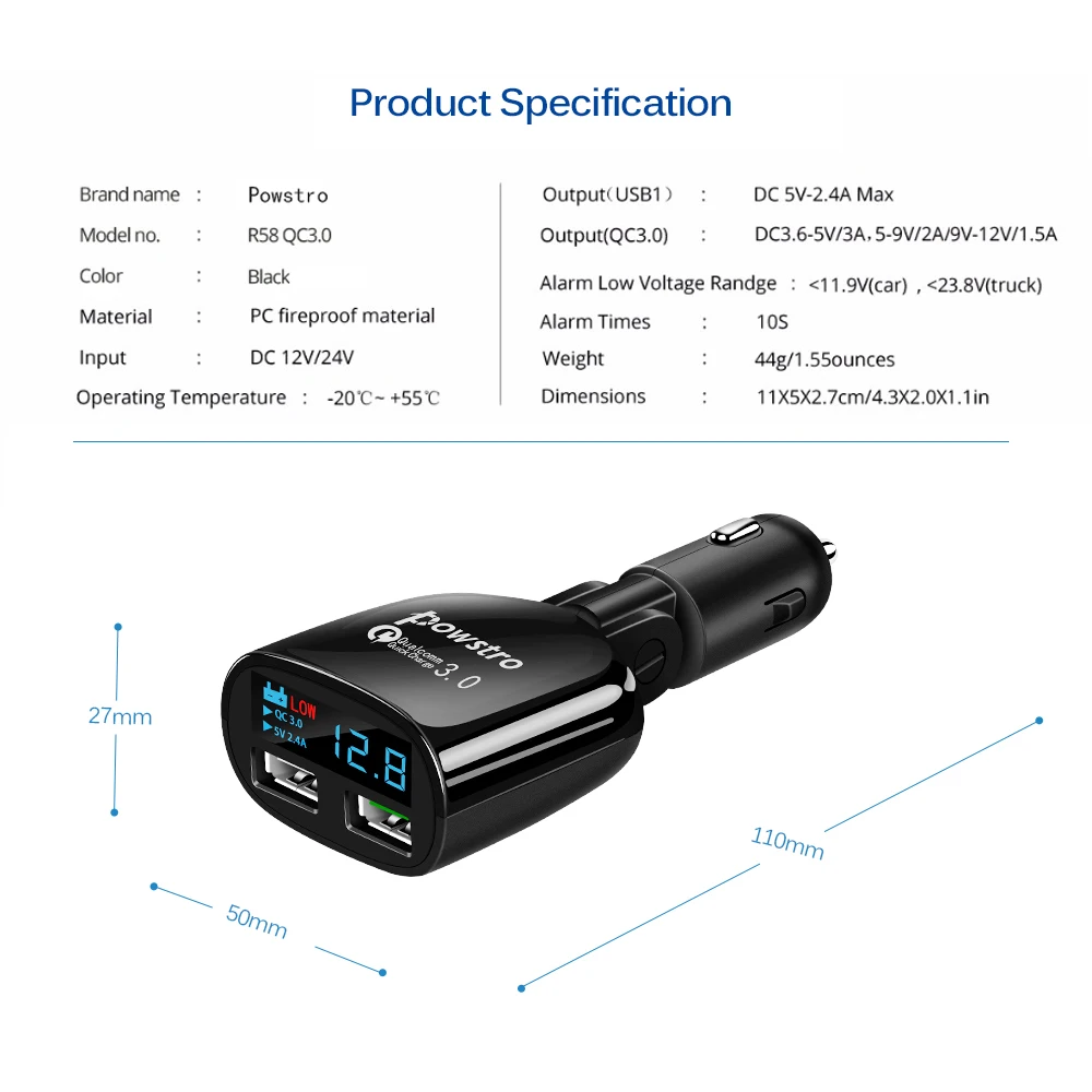 USB Port 2 :Quick Charge 3.0 USB, 5V 3A or 9V/2A or 12V/1.5A