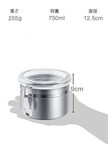 カラー: 0.75L サイズ: 約外径125×90mm(本体のみ) 本体重量:約255g 容量: 約0.75L ステンレス製で洗練されたデザイン 透明な蓋なので中身を確認できる れらの缶は、コーヒー、紅茶、お菓子、豆、ミルク パウダーや他の食品を保存するのに使用できます。