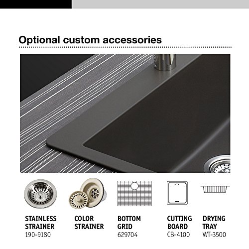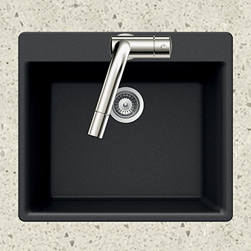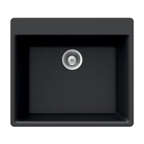 Houzer G-100 MIDNITE Quartztone Series Granite Top Mount Single Bowl Kitchen Sink, Black