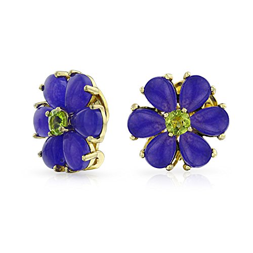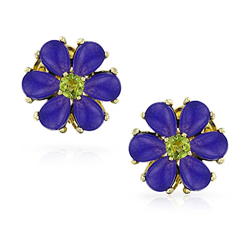 Whether you have a summer birthday or a winter birthday, August birthstone earrings and February birthstone jewelry both make sensational gifts. Six lavender jade teardrop petals make up the stunning flower on our very pretty lavender jade earrings. Each flower clip on earring boasts a sparkling peridot center, making them a perfect choice for many different occasions. And since these gold earrings for women are clip ons, any women on your gift list can easily wear them. A purple earring will add a lovely boost of color to an otherwise neutral outfit. Buy a pair for yourself as a treat today or buy a pair for a friend who wears gemstone jewelry. They are made of 925 sterling silver and plated in gold, for a look she will love.Feature
