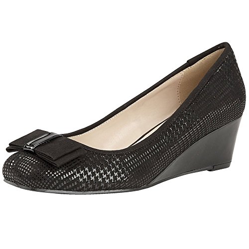 Studio : Lotus Publisher : Lotus Binding : Apparel Product Description Oozing feminine chic is the Lotus ladies wedge shoe Peak. This classic round toe court shoe features a fashionable 5cm wedge heel, a distinctive printed upper and striking bow detailing. Peak is a true essential for all style minded women. 0
