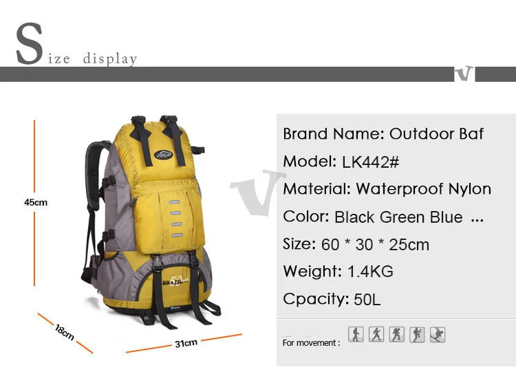 50L Waterproof Women!#!amp!*!Men Travel Backpack Outdoor Mountain Camping Mochilas Climbing Hiking Backpack Bagpack Sport Back Bag 2015 | ||||