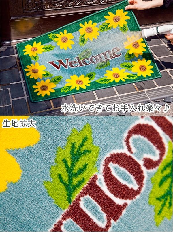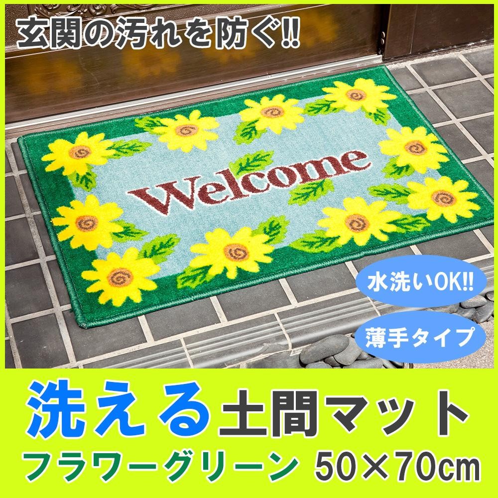 玄関の汚れを防ぐ土間マット♪ドアや足元に引っかかりにくい薄手タイプです。裏面滑り止め付き☆ 製造国:インドネシア 素材・材質:表地:ナイロン100%裏地:SBR 商品サイズ:約50×70cm、厚み約0.5cm 仕様:水洗い可屋外用 ※サプライヤー直送品 ご注文後2~3営業日後の出荷となります【商品名】洗える土間マット フラワーグリーン 50×70cm 52176
