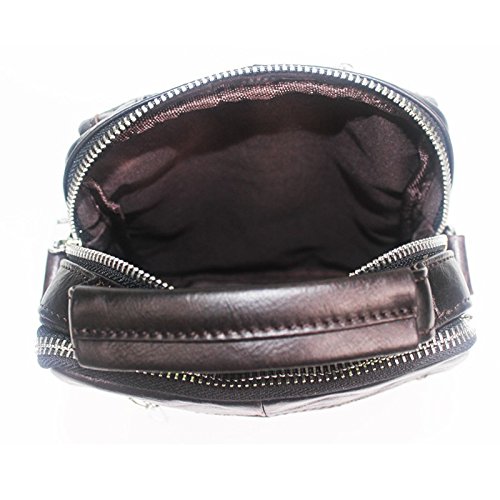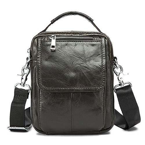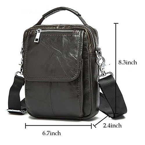 -. Feature : Main material: Made of high-grade 100% genuine leather. / High quality metal zipper and adjustable shoulder strap. / Structure: 1 main zipper pocket closure, 1 zipper pocket, 1 elastic ribbon, 1 inner zipper pocket, 1 front zipper pocket have phone slot and card slot. Lots of pockets. Easily carry your notebook, mobile phone, wallet, Mini and other daily things. / It is very durable for student study, business, outdoor, travel and work. / The bag have 2 sizes, the smaller one is 6.7*2.4*8.3inch(L*W*H), the larger one is 7.9*3.1*9.4inch(L*W*H).
