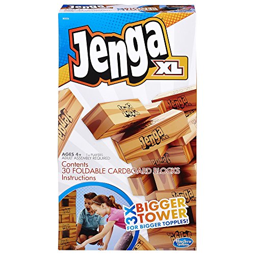 - Feature : Jenga XL game is a bigger version of the classic block-stacking game / Foldable cardboard blocks are 3" x 9" / Tower is 3 times higher than the classic game's tower / Includes 30 foldable cardboard blocks and instructions