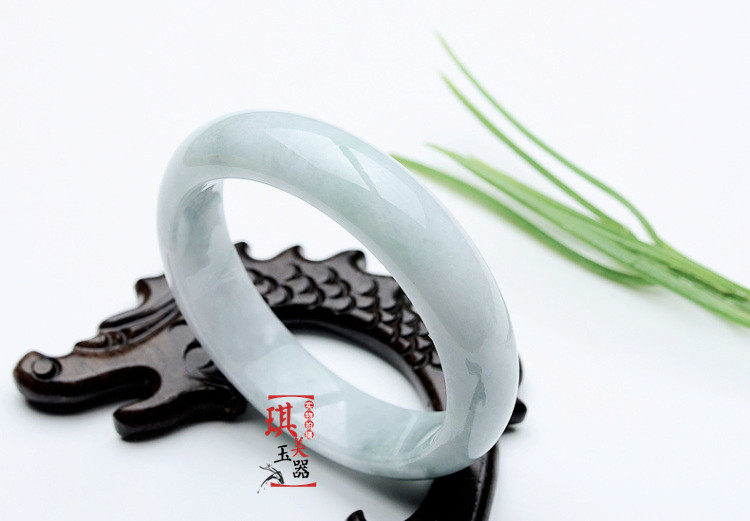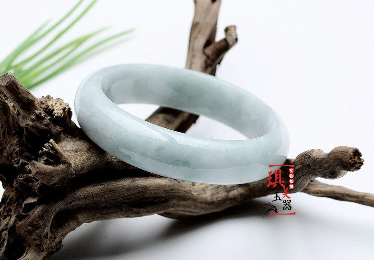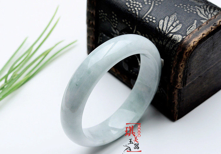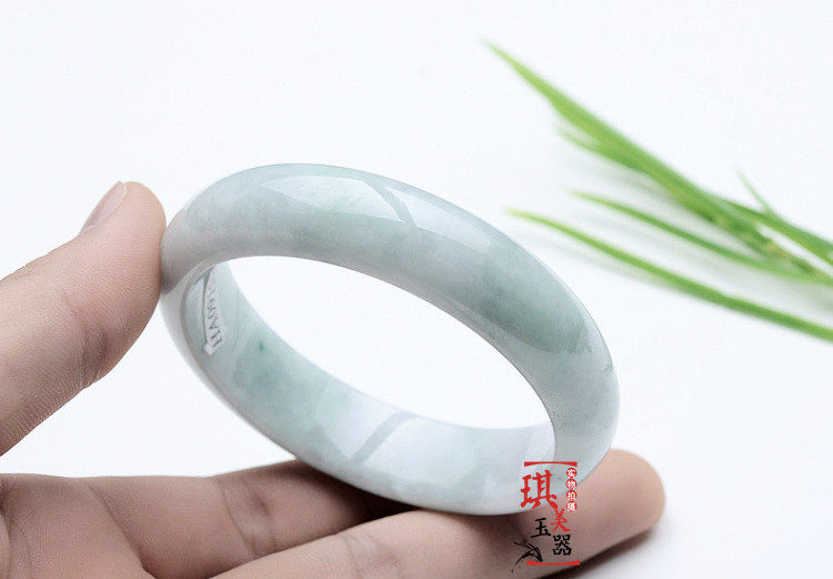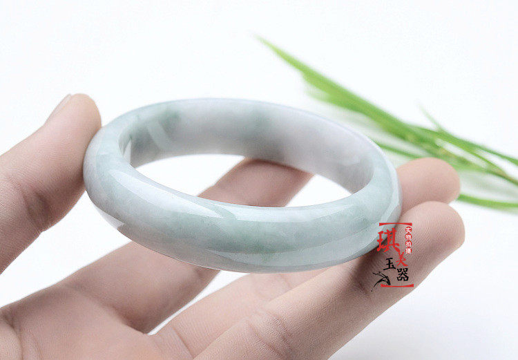 天然翡翠手镯浅绿冰糯种飘花玉手镯 女