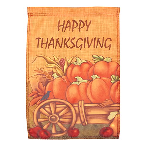 -. Brand : Juvale -. Color : Pumpkin Cart -. EAN : 0843128110608 -. Feature : OUTDOOR THANKSGIVING YARD FLAG: Send warm holiday greetings to your neighbors with this endearing festive garden flag featuring bold harvest colors and a beautiful illustration of a cart full of squash. / WEATHERPROOF MATERIAL: Made of durable fade-resistant Polyester with double-stitched edges for long-lasting use; designed for outdoor display. / EASY TO HANG: Top sleeve fits most garden flag poles. / MACHINE WASHABLE: Machine wash separately at low temperatures. / DIMENSIONS: Garden flag measures 12.25 x 17.25 inches. -. Label : Juvale -. Manufacturer : Juvale -. MPN : NE -. PartNumber : NE -. ProductGroup : Lawn & Patio -. ProductTypeName : OUTDOOR_LIVING -. Publisher : Juvale -. Studio : Juvale -. Title : Juvale Decorative Garden Flag - Happy Thanksgiving House Flag Banner, Fall Holiday Seasonal Outdoor Lawn Decoration, Pumpkin Cart Illustration, 12.25 x 17.25 Inches -. UPC : 843128110608