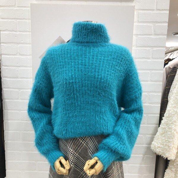 그린컬러감이 예쁜 목폴라 니트티입니다